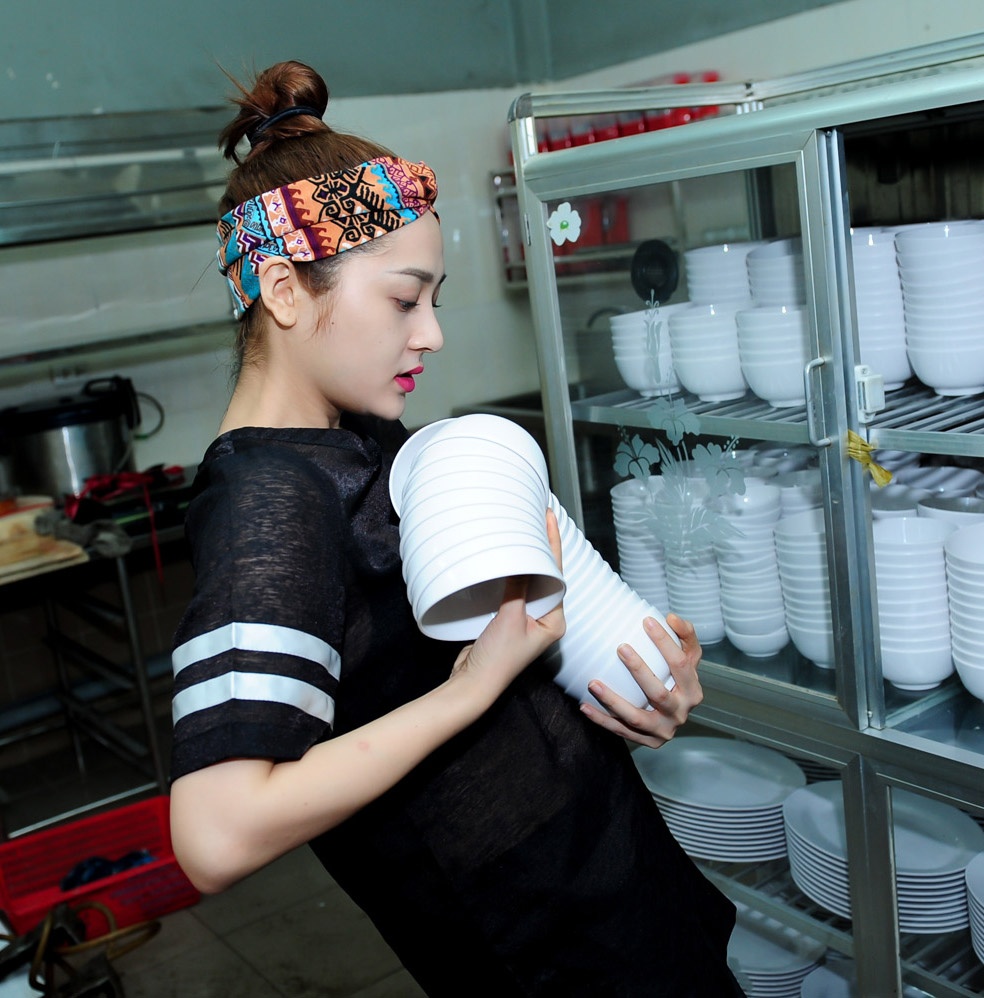 Nữ ca sĩ xông xáo, quan sát thợ sửa quán. Cô cho biết, nhiều người nhìn vào đánh giá cô là tiểu thư con nhà giàu sang nhưng cô là người mạnh mẽ, sinh ra trong một gia đình từng có thời điểm khó khăn nên cô luôn trân trọng mọi thứ trong cuộc sống.