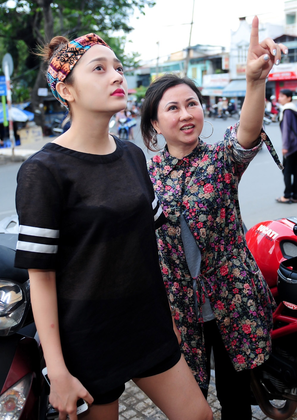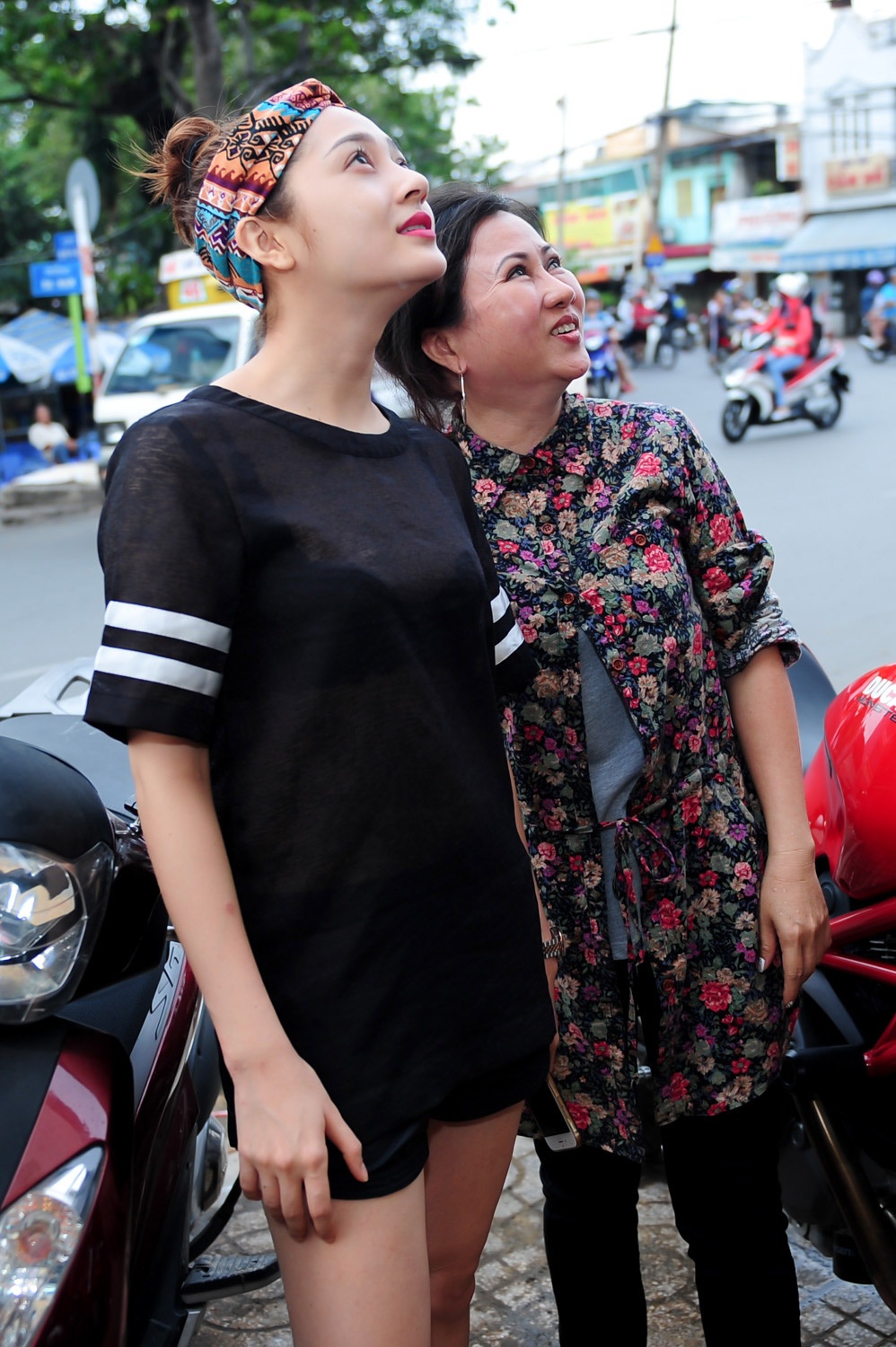 | Nữ ca sĩ diện áo xuyên thấu, gương mặt trang điểm nhẹ nhàng, xinh xắn khi xuất hiện trước cửa quán ăn của gia đình cùng mẹ. Bảo Anh chia sẻ, công việc kinh doanh nhỏ lẻ nhưng từng giúp gia đình có cuộc sống tốt hơn ở thời điểm khó khăn ngày trước. |