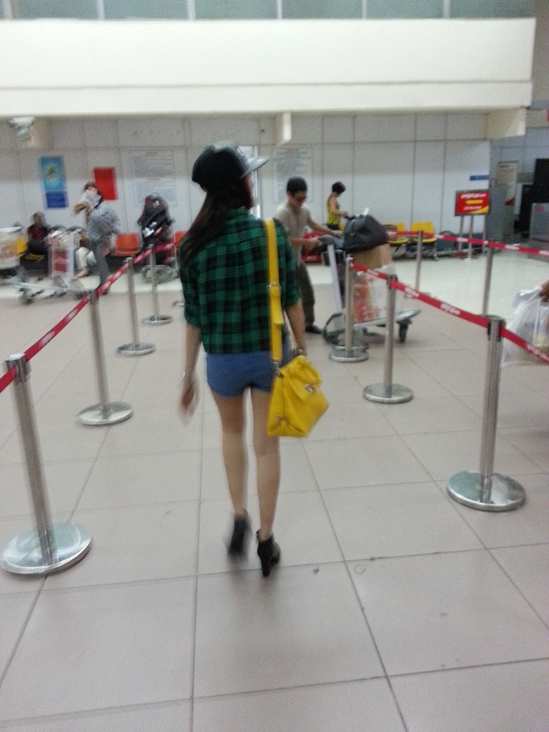 Trong thời gian chờ đợi, cô đi dạo xung quanh sân bay.