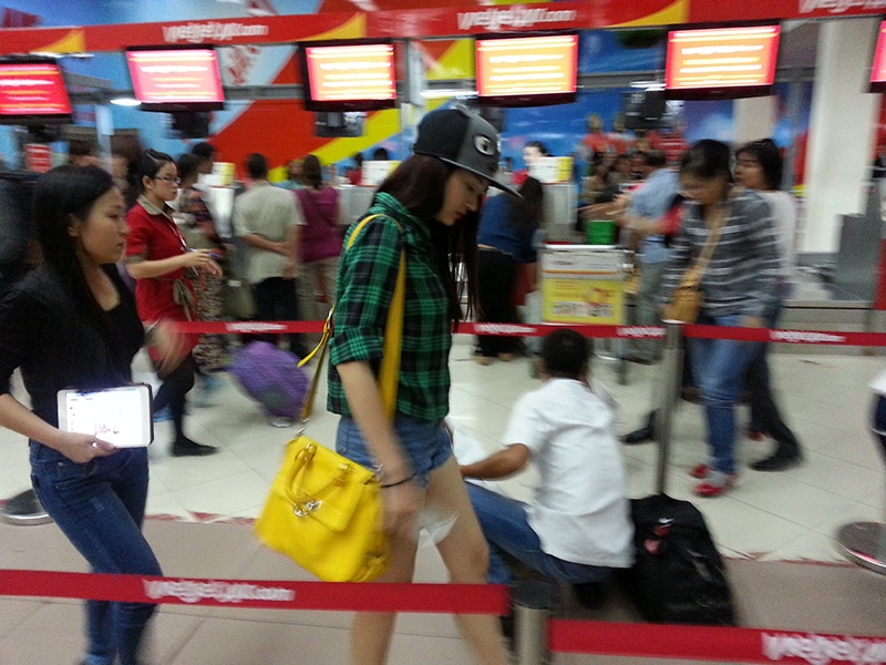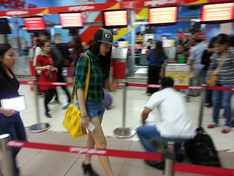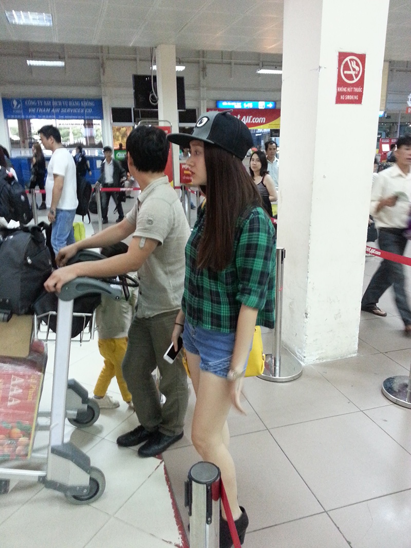 Xuất hiện tại sân bay chiều qua - 21/11 để đến Nha Trang diễn, nhưng cuối cùng nữ ca sĩ đành lỗi hẹn với người hâm mộ miền Trung vì chuyến bay bị hủy do thời tiết xấu.