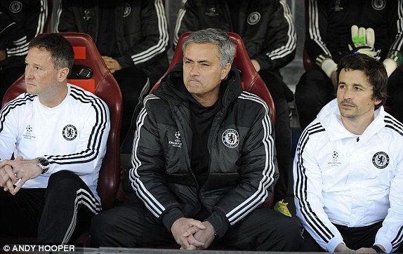 | Trên băng ghế huấn luyện, HLV Mourinho lo lắng khi chứng kiến học trò gặp khó khăn ở sân Vicente Calderon. |