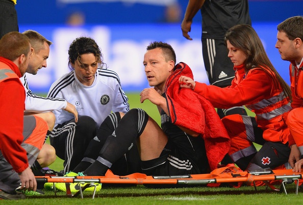 | Thủ quân John Terry bị đau do va chạm với cầu thủ đối phương. |