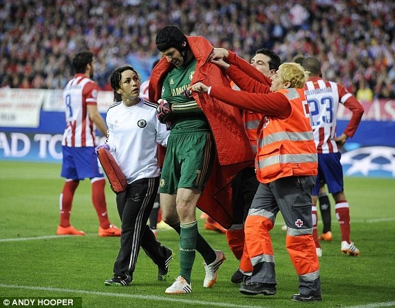 | Petr Cech dính chấn thương sau khi trận đấu diễn ra được 15 phút. |