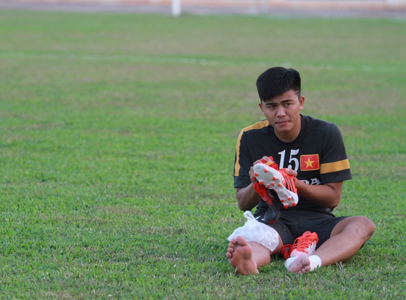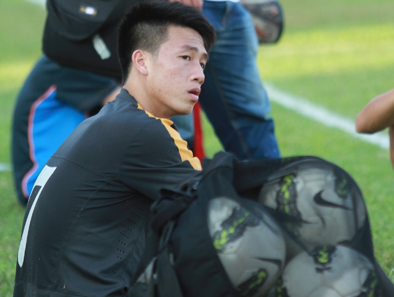 | Huy Hùng chưa bình phục, tiếp tục phải ngồi ngoài theo dõi các đồng đội. |