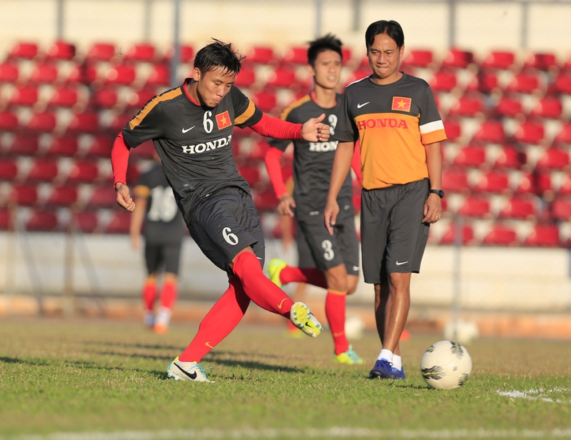 | Theo lịch của BTC, U23 Việt Nam tập vào lúc 8h sáng trên sân của CLN Nay Pyi Taw. Tuy nhiên, HLV Hoàng Văn Phúc không đồng ý vì tập giờ đó đồng nghĩa với việc các học trò của ông phải dậy rất sớm. Thuyền trưởng U23 Việt Nam đã xin chuyển sang tập lúc 16h chiều. |