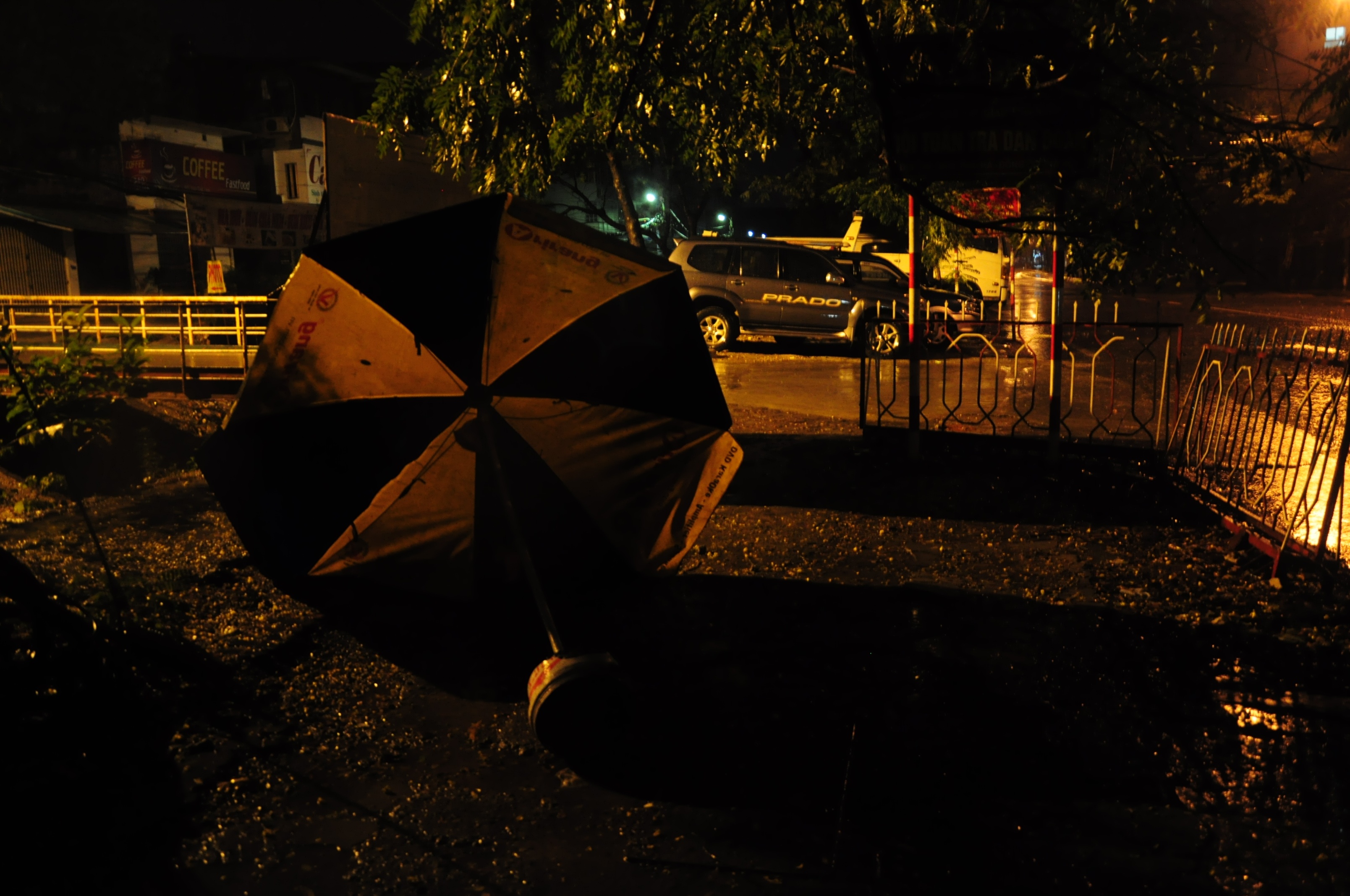 | Một chiếc xe chết máy giữa đêm mưa bão. |