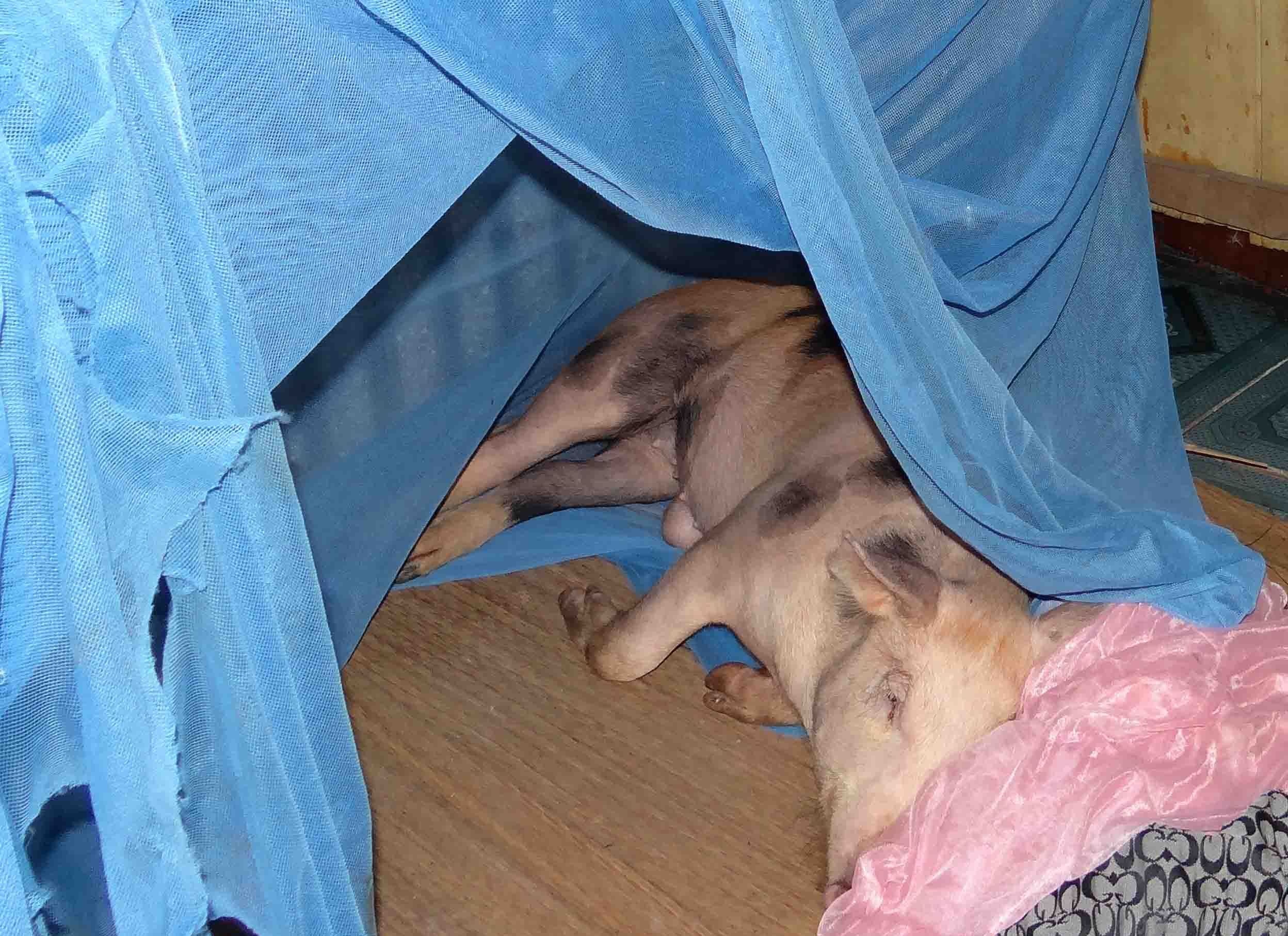 | Gia đình ông Đẩm mua con heo giá hơn 2 triệu về rồi cho ngủ trên giường. |