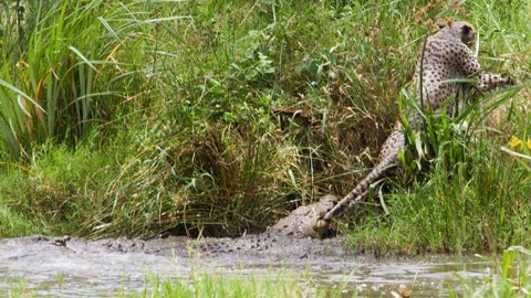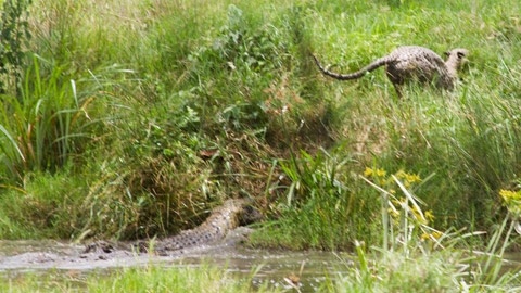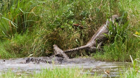 | Con báo vùng dậy thoát hàm cá sấu khi cái chết cận kề. |