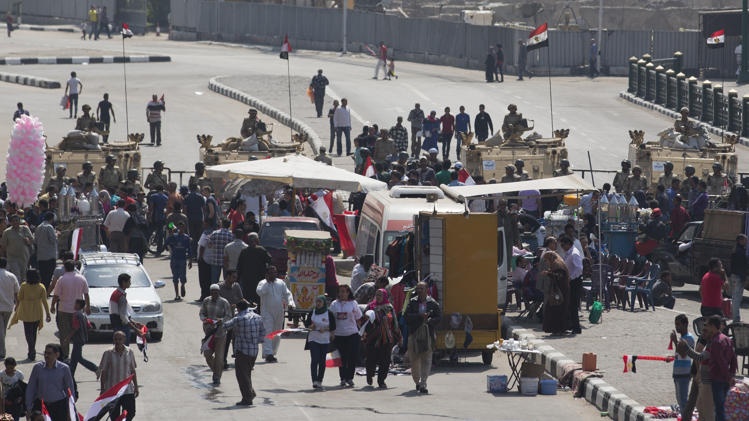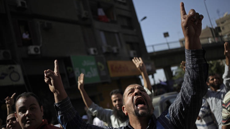 | Người biểu tình hô vang khẩu hiệu chống tướng Abdel-Fattah el-Sissi, Bộ trưởng Quốc phòng Ai Cập. Ảnh: AP. |