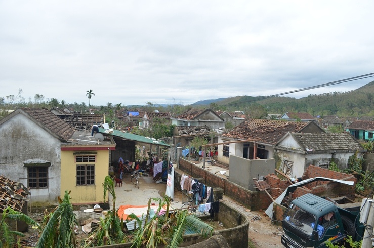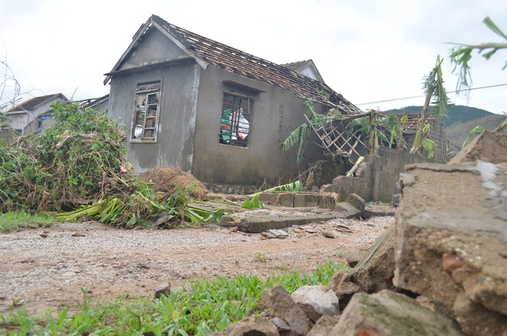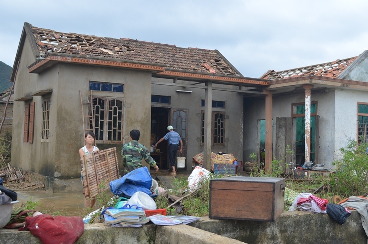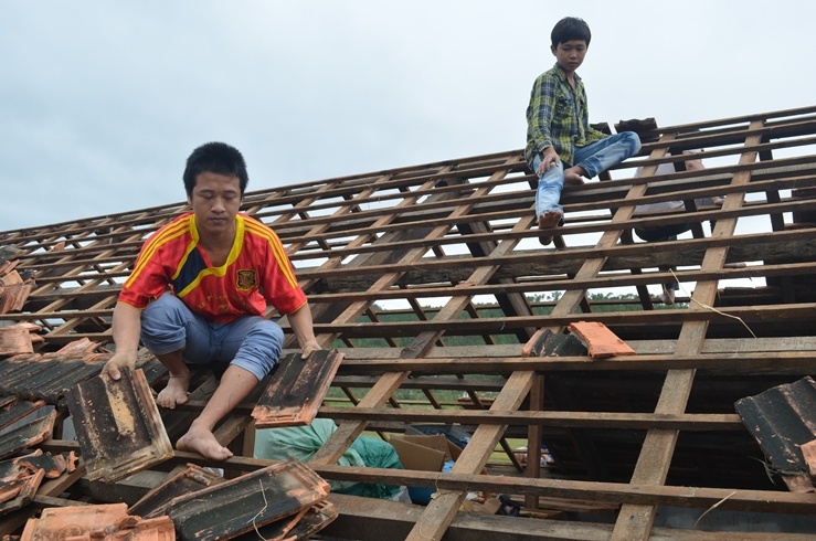 | Trước đó, cơn bão số 10 và số 11 đã thổi bay nhiều mái nhà của người dân. |