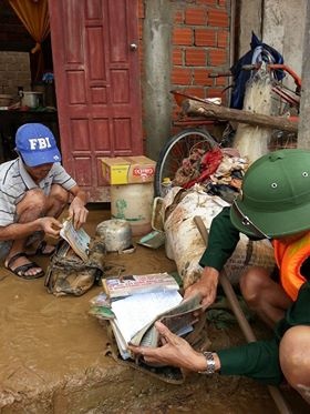 | Sách vỡ của học sinh ướt hết. |
