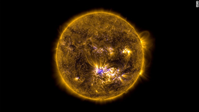 Vệ tinh SDO của NASA chụp lại những vụ nổ plasma trên bề mặt vầng thái dương ngày 8/7/2014. Chúng sẽ thổi những đám mây chứa hạt tích điện vào không gian. Khi ma sát với khí quyển trái đất, những hạt tích điện này sẽ tạo ra hiện tượng cực quang kỳ thú. |