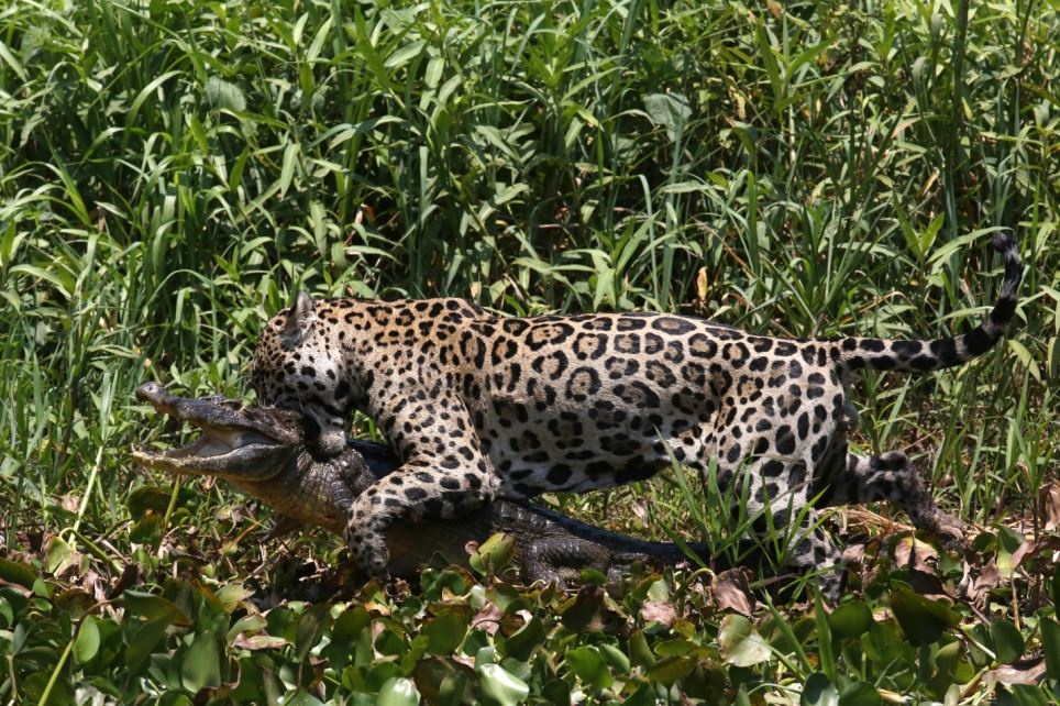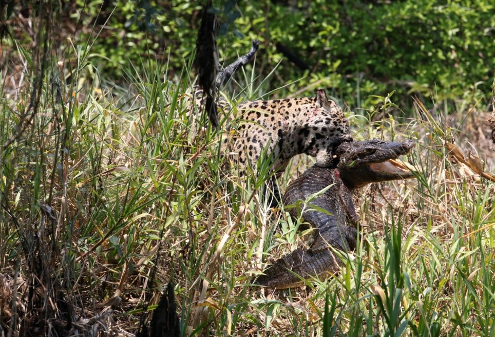 Để bắt được cá sấu, báo phải đi săn vào ban ngày, khi loài bò sát máu lạnh này đang nằm phơi nắng. Vì thế, những con báo như Mick thu hút nhiều du khách tới khu vực này để quan sát chúng. Dù báo đốm Mỹ có khoảng 100.000 cá thể nhưng nạn săn bắn tràn lan khiến chúng khá nhút nhát và lẩn tránh con người. |