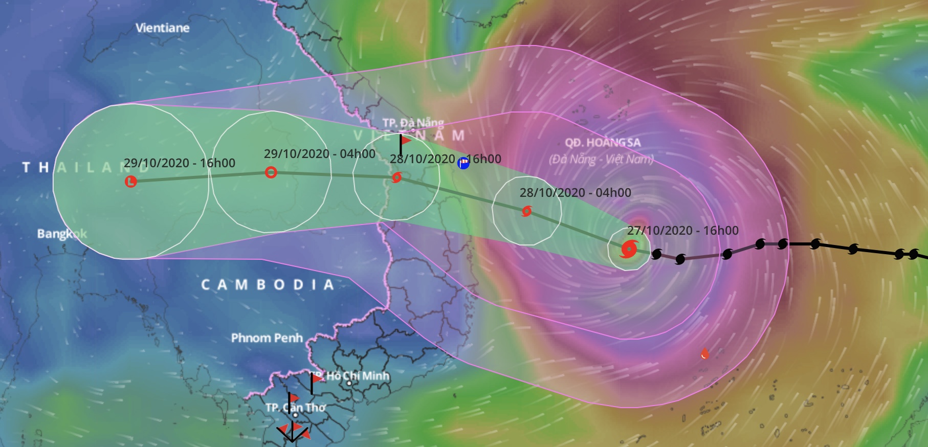 “Tham khảo nhận định của các cơ quan khí tượng quốc tế, chúng tôi dự báo mưa lớn và gió mạnh do bão trên đất liền bắt đầu từ 19h tối 27/10 và kéo dài đến 19h tối 28/10. Mưa và gió mạnh kéo dài liên tục trong 24 giờ, sau đó giảm dần”, ông Lâm nói.