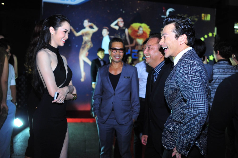 Nam diễn viên "Đoạt hồn" thoải mái cười nói cùng top 5 HHVN Vũ Ngọc Anh và các mỹ nhân có mặt tại bữa tiệc được tổ chức ở TP.HCM tối 9/6.