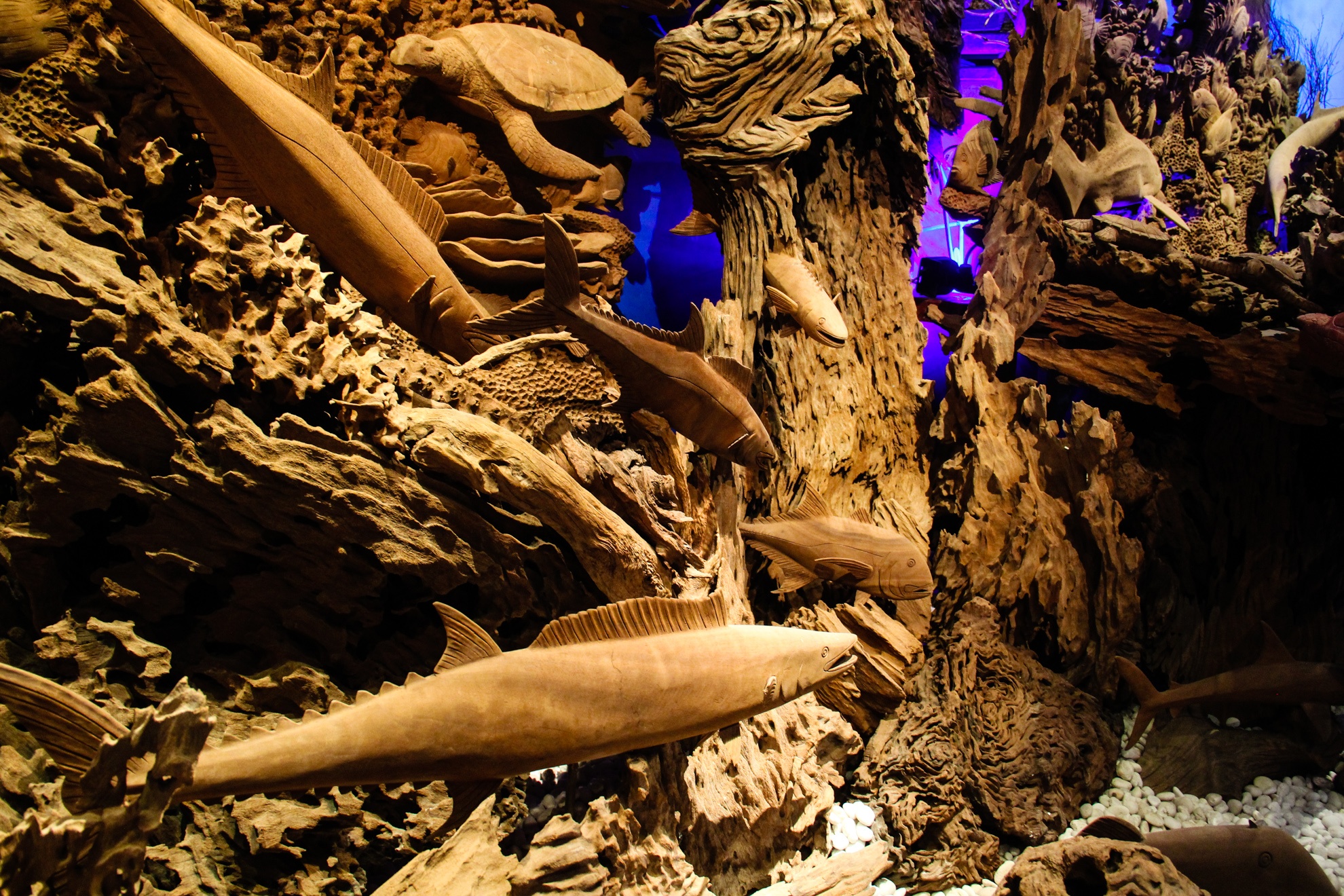 | Woodland tái hiện sinh động cả một đại dương bằng gỗ. Hàng chục nghệ nhân phải làm việc trong nhiều tháng trời để hoàn thành công trình này. |
