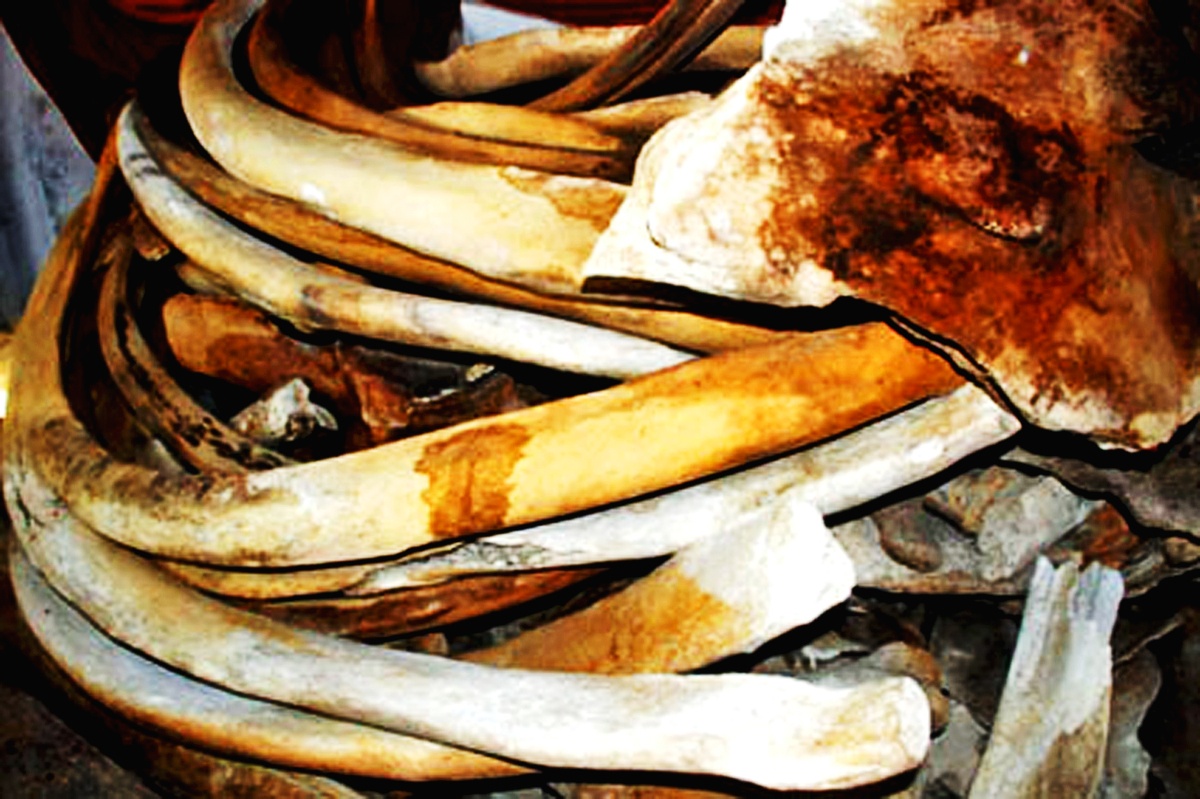 | Xương sườn cá voi dài hơn 3m ngả màu trắng vàng cong vút trông giống "kho ngà voi". |