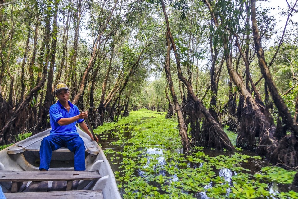 Người dân đi thuyền trong rừng tràm Trà Sư gần Châu Đốc. Ảnh: Tuleyhcm. |