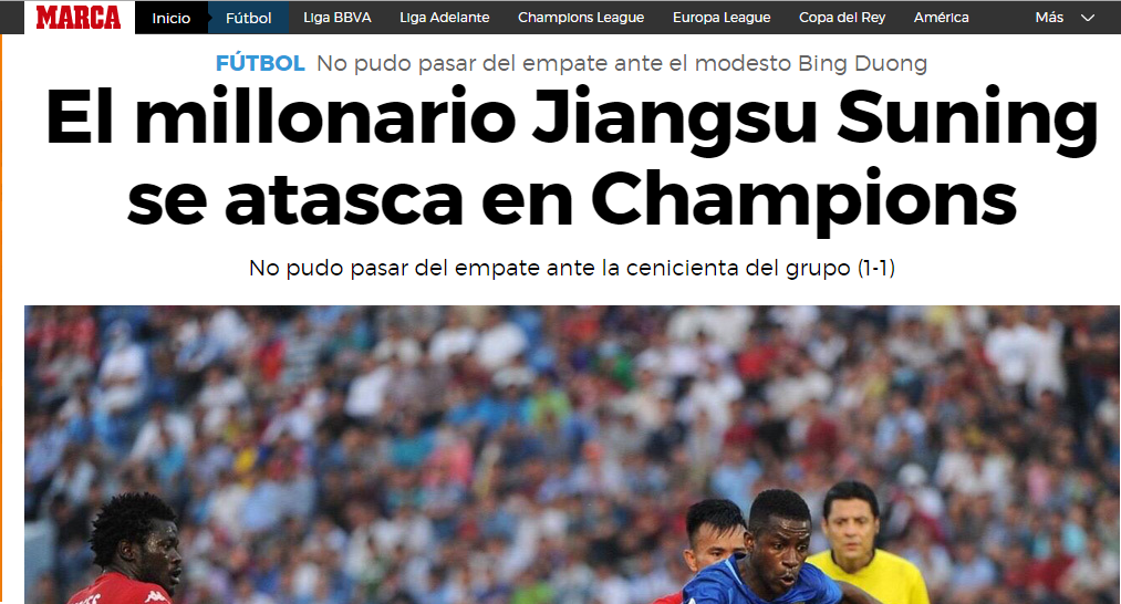 Trên báo Marca phiên bản tiếng Tây Ban Nha có bài viết “Triệu phú Jiangsu Suning bế tắc ở AFC Champions League”. Tác giả Mikel Sainz ví B.Bình Dương là “La Cenicienta” mang nghĩa Cô bé lọ lem.
