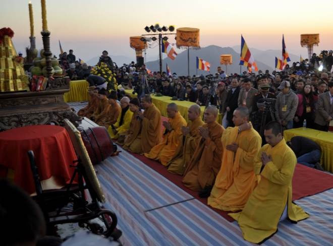 Hòa thượng Thích Thanh Quyết, trụ trì chùa Yên Tử và nhiều chư tăng khác làm lễ.