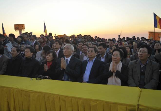 Phó chủ tịch nước Nguyễn Thị Doan, Phó thủ tướng Phạm Bình Minh và nhiều lãnh đạo cao cấp khác có mặt dự lễ lúc 6h sáng 3/12.