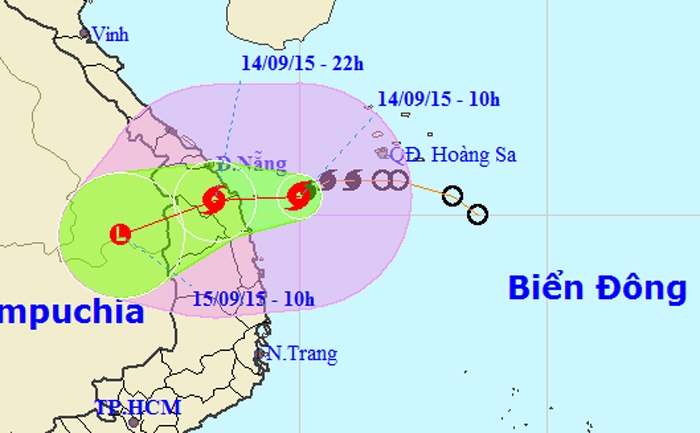 Trong công điện của Ban chỉ đạo trung ương về phòng chống thiên tai sáng 14/9, vùng nguy hiểm được xác định là nam vĩ tuyến 17,5, bắc vĩ tuyến 14,5 và tây kinh tuyến 113.