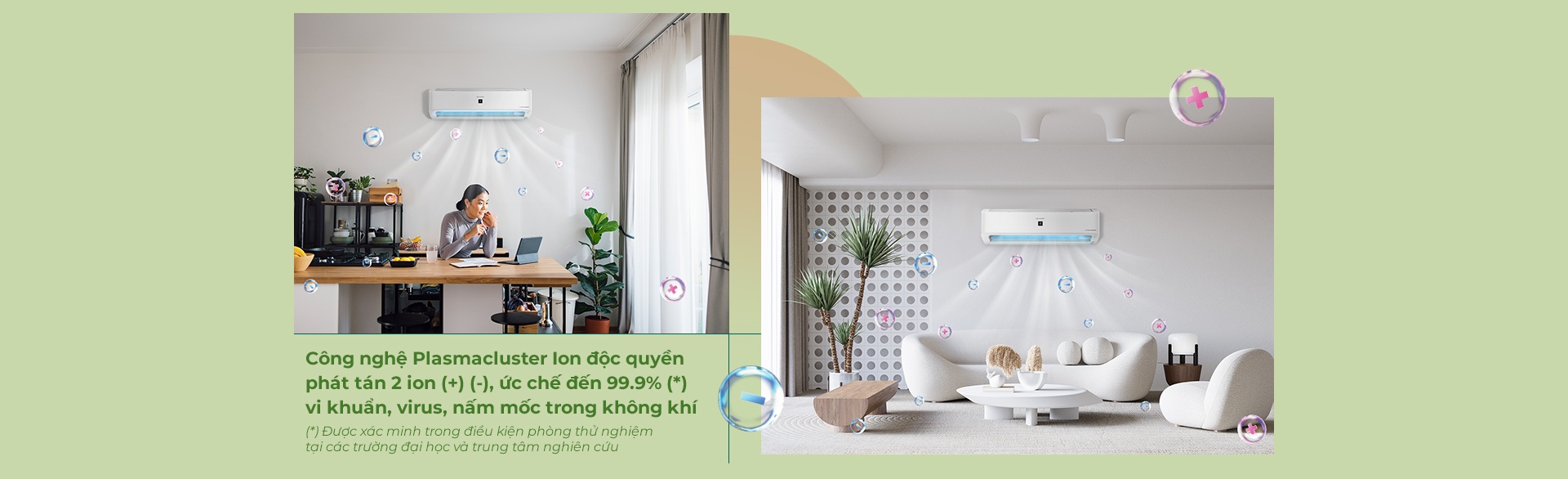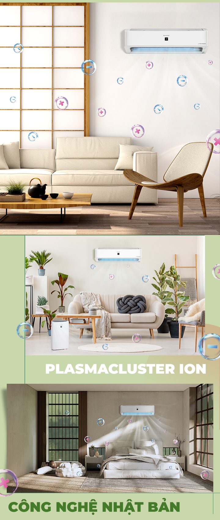Công nghệ diệt khuẩn Plasmacluster Ion độc quyền từ Sharp hoạt động theo nguyên lý phát tán 2 ion dương, âm tương tự trong tự nhiên, hiệu quả ức chế lên đến 99,9% vi khuẩn, virus, nấm mốc và bảo vệ mẹ bầu, trẻ nhỏ trước các tác nhân gây dị ứng trong không khí như khói thuốc, mùi hôi, vật nuôi cùng chất ô nhiễm.