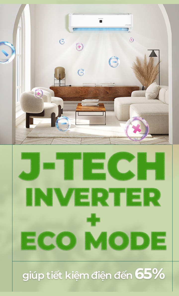 Hiện, điều hòa Sharp với công nghệ J-Tech Inverter kết hợp chế độ ECO giúp tiết kiệm điện hiệu quả lên đến 65%. Các đình có thể thoải mái sử dụng điều hòa cả ngày dài mà không cần bận tâm về chi phí điện khi hè về.