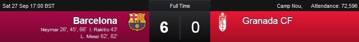 Đúng lúc này trọng tài thổi còi kết thúc trận đấu giữa Barca và Granada. Kết quả chung cuộc là 6-0 nghiêng về đội quân của HLV Luis Enrique.