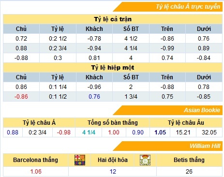 - Betis thua 4 hòa 1 Barca trong 5 trận gần nhất