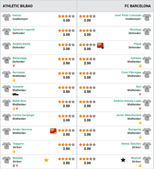 Trong trận đấu thiếu vắng khá nhiều cầu thủ trụ cột, đặc biệt là chân sút chủ lực Lionel Messi, Barca đã gục ngã trên sân San Mames của Bilbao. Bàn thua duy nhất trong hiệp 2 (phút 71) khiến nhà vô địch phải nhận trái đắng đầu tiên mùa này. Thất bại trước Bilbao đẩy Barca vào tình cảnh phải chịu áp lực rất lớn khi để cho Atletico Madrid san bằng điểm số trên bảng xếp hạng và chỉ còn hơn Real 3 điểm.