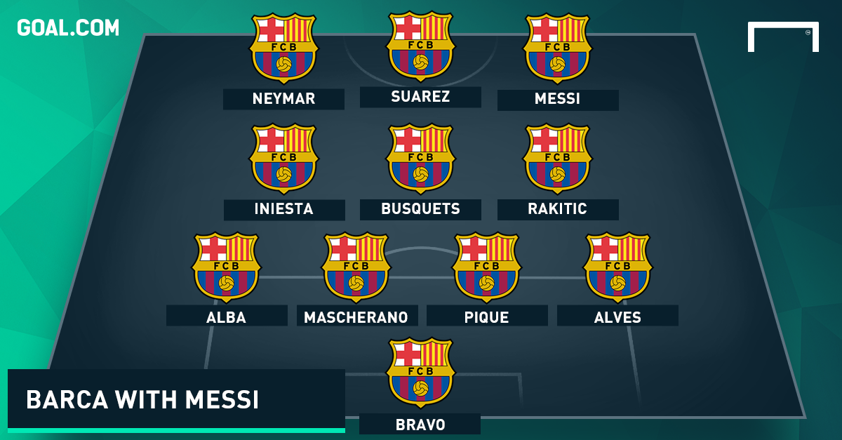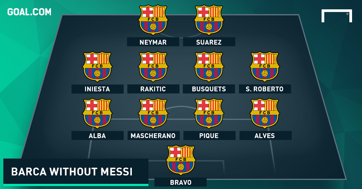 | Sơ đồ 4-3-3 của Barca không Messi. Đồ họa: Goal. |