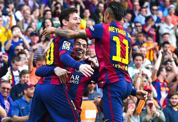 Barcelona đang hướng đến cú ăn ba ở mùa giải năm nay khi đã góp mặt trong 2 trận chung kết Champions League, cúp Quốc gia Tây Ban Nha và gần như cầm chắc chức vô địch La Liga. Thành tích ấn tượng của Blaugrana có sự góp công rất lớn từ phong độ chói sáng của Messi, Neymar và Suarez.