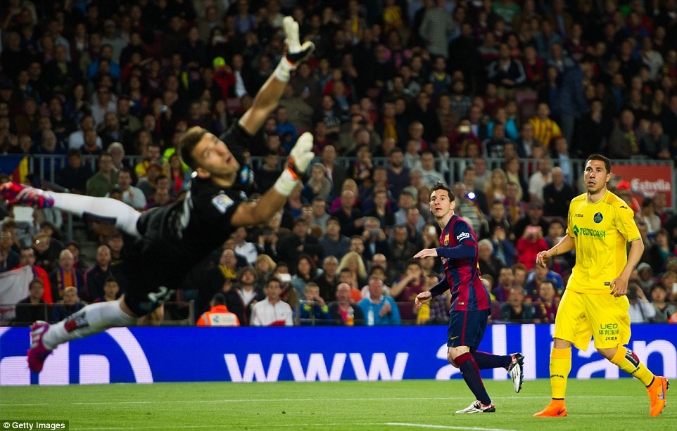Ba tiền đạo của Barca ghi bàn ở trận đội nhà vượt qua Getafe 6-0 thuộc vòng 34 La Liga. Trong đó, Messi, Suarez cùng lập cú đúp. Hai bàn còn lại thuộc về Neymar và Xavi.