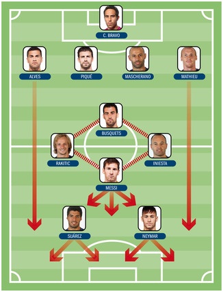Theo nhận định của tờ Sport, HLV Luis Enrique sẽ không để Barca đá cố định một đội hình. Thay vào đó, chiến lược gia gốc Catalunya sẽ hoán đổi linh hoạt giữa hai sơ đồ 4-4-2 và 4-3-3. Theo đó, Lionel Messi sẽ giữ trọng trách châm ngòi cho cặp tiền đạo Neymar – Suarez theo sơ đồ 4-4-2. Chủ nhân của 4 Quả bóng vàng có thể nhô cao đá tiền đạo trung tâm theo sơ đồ 4-3-3.