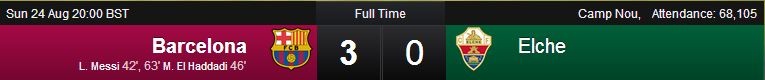 Chiến thắng 3-0 giúp HLV Luis Enrique có màn ra mắt hoàn hảo tại sân Nou Camp. Tuy nhiên, sẽ còn quá sớm để nói về màn phục thù của Barca ở mùa giải năm nay bởi dẫu sao, Elche cũng chỉ là một ứng cử viên cho suất xuống hạng. Phải đến vòng đấu tiếp theo, trong chuyến hành quân tới El Madrigal của Villarreal, có lẽ sức mạnh của Barca ở mùa giải năm nay mới thật sự lộ diện.
