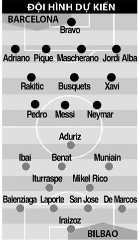 Trước Bilbao, Messi sẽ nhận được sự hỗ trợ của những đồng đội tốt nhất. HLV Luis Enrique sẽ thực hiện 4 sự thay đổi so với trận đấu vòng trước gặp Villarreal. Mascherano trở lại đá cặp trung vệ với Pique do Mathieu chấn thương. Bên hành lang phải, Dani Alves nhường chỗ cho Adriano. Những thay đổi đáng chú ý nhất nằm ở tuyến trên khi Xavi sẽ trở lại đội hình chính thức thay cho Rafinha và Neymar sau khi đạt trạng thái thể lực tốt sẽ thế chỗ Munir. Có Xavi và Neymar, lối chơi của Barcelona hứa hẹn nhuần nhuyễn và tiềm ẩn nhiều đột biến hơn. Và Messi chắc chắn sẽ được phục vụ tốt hơn.