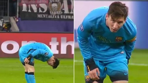 | Messi bị đau trong lượt trận cuối vòng bảng Champions League. |