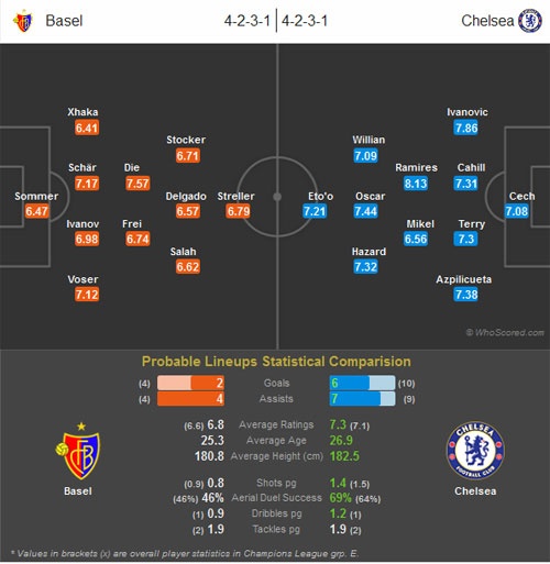 Trong chuyến làm khách tới Thụy Sĩ, HLV Mourinho không thể đưa ra sân đội hình mạnh nhất do trung vệ David Luiz và hậu vệ trái Ashley Cole chưa có thể lực tốt nhất sau thời gian điều trị chấn thương. Dù Basel đang là đội bóng số 1 tại giải vô địch quốc gia Thụy Sĩ, nhưng chất lượng đội hình của CLB này chắc chắn còn kém xa Chelsea.