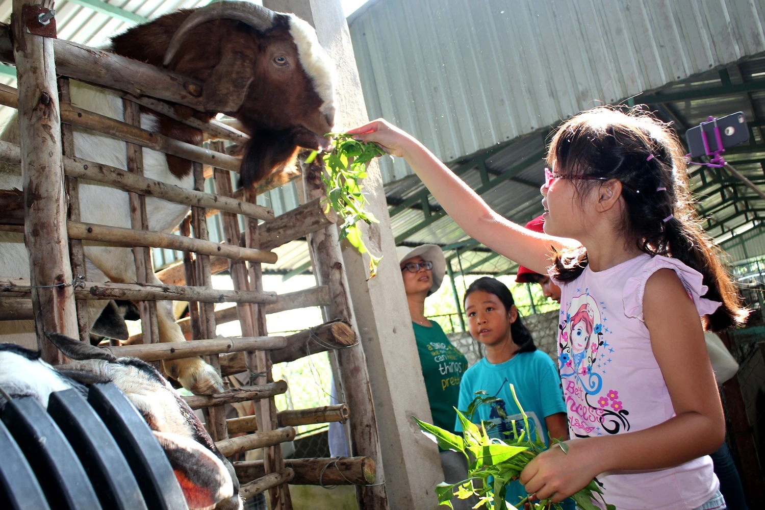 | Đến đây, các gia đình sẽ tìm hiểu khẩu phần ăn, cách chăm sóc các loại gia súc. Khách sẽ được tự tay cho thú ăn. |
