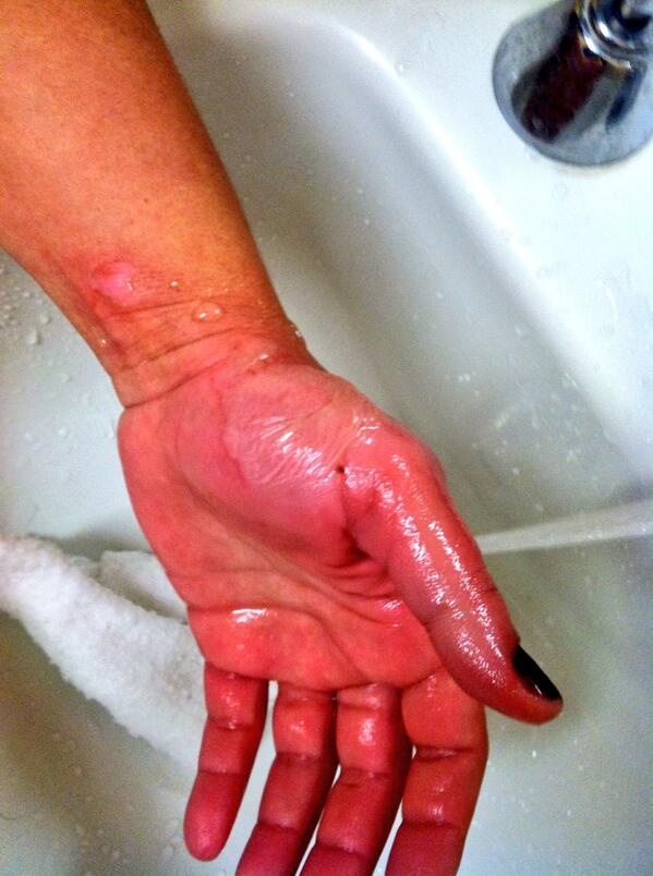 | Một người phụ nữ bỏng tay khi chơi trò hắt nước sôi. Ảnh: latimes |