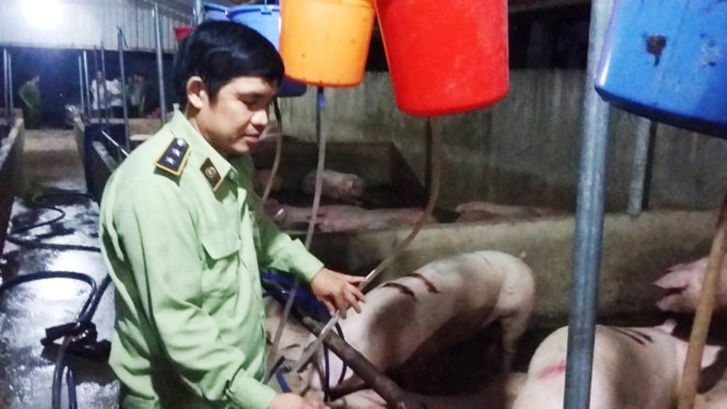 Theo ông Như, tối 27/10, quản lý thị trường cùng lực lượng thú y bất ngờ kiểm tra cơ sở chăn nuôi của ông Vũ Xuân Hải ở tổ 31, khu phố 7, phường Long Bình (TP.Biên Hoà) và bắt quả tang ở đây có chín người đang bơm nước vào 42 con heo.