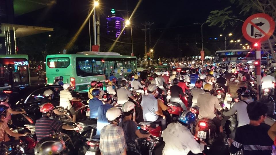 | Tại đây, các phương tiện di chuyển chậm, cảnh sát phân luồng tốt nên không xảy ra kẹt xe. Vành đai bị cấm lưu thông là đường Tôn Đức Thắng - Hàm Nghi - Lê Lai - Nguyễn Bỉnh Khiêm - Nguyễn Hữu Cảnh - Lê Thánh Tôn - Phạm Hồng Thái - Cách Mạng Tháng Tám - Nguyễn Thị Minh Khai. |
