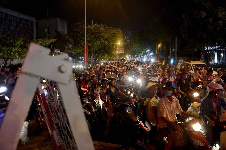 | Lực lượng chức năng phải dỡ bỏ hàng rào cấm để xe cộ lưu thông, nhưng tình hình ùn tắc vẫn không giảm. Những trục đường song song với đường cấm cũng xảy ra ùn ứ cục bộ, như Nguyễn Đình Chiểu, Điện Biên Phủ,... |
