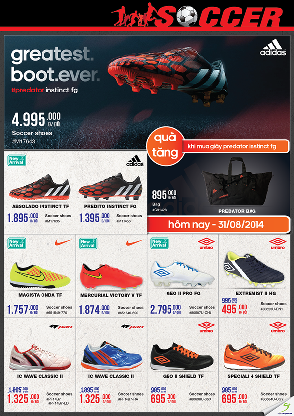 - Tặng 1 túi thể thao Adidas trị giá 895.000 đồng khi mua Adidas Predator Instinct FG.