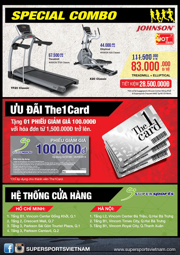 - Ngoài ra có ưu đãi đặc biệt cho thành viên The 1 Card: 1 phiếu giảm giá 100.000 đồng khi có hóa đơn bất kỳ từ 1,5 triệu đồng trở lên tại Supersports.