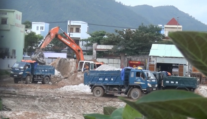 Ghi nhận của Tuổi Trẻ cho thấy sau khi cát được múc lên thì xe ben chở đất đá của Công ty Minh Hòa (chở từ bãi thải Xuân Thiều) đem vào đổ lấp lại vị trí đã lấy cát.