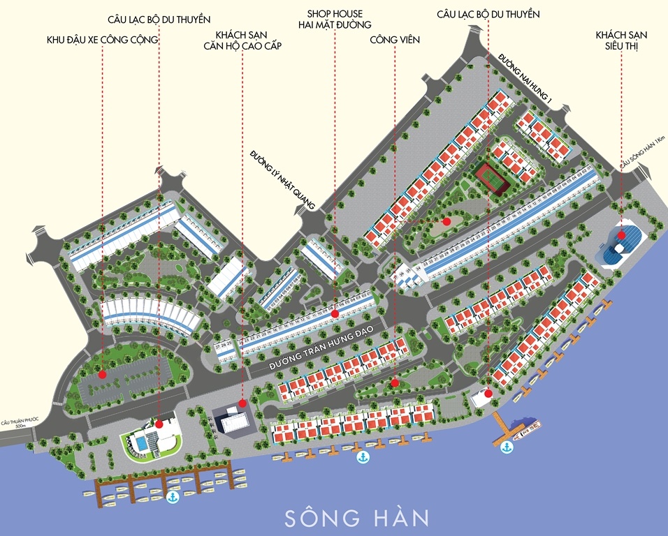 Hiện Đà Nẵng có quy hoạch về vị trí các bến du thuyền dọc hai bờ sông Hàn. Trong đó, Marina Complex được xem là khu phức hợp bất động sản và bến du thuyền cao cấp nhất với tổng diện tích đầu tư 11,7 ha. Dự án sở hữu 10.000 m2 mặt nước, được đầu tư và phát triển trở thành một điểm nghỉ dưỡng và cũng là điểm du lịch cao cấp theo tiêu chuẩn quốc tế.