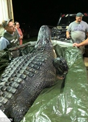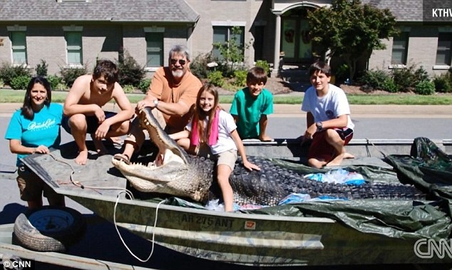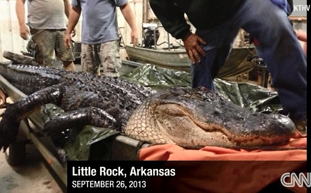 Cá sấu khủng nhất từng bắt được ở bang Arkansas, nước Mỹ.