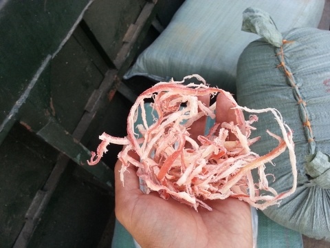 | Mực khô bị bắt giữ nghi làm giả bằng cao su, nhựa. |